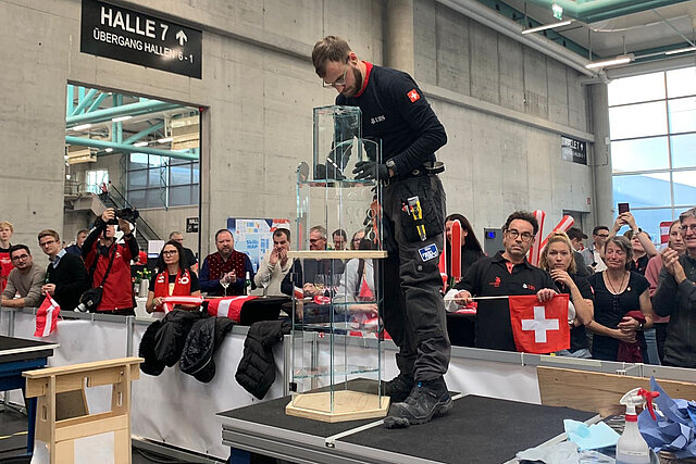 Renato Sonanini vertrat die Schweiz und die Glas Reinhard AG mit Bravour. Auf die europäischen Berufsmeisterschaften vorbereitet wurde er von seinem Trainer Michael Küng. Beide haben viele Stunden in die Vorbereitung gesteckt und wurden dabei von ihrem Arbeitgeber, Glas Reinhard, unterstützt. Mit Erfolg; Renatos Glasmöbel überzeugte sowohl das Publikum als auch die strengen Experten, darunter Michael Küng, der zusammen mit den anderen Experten die Qualität der Arbeiten am Wettbewerb bewertete.